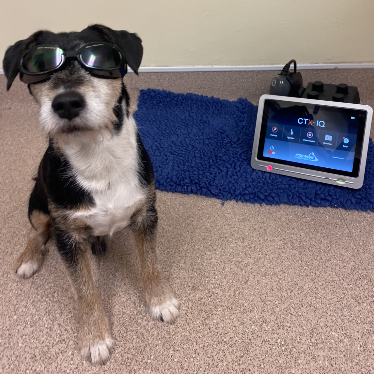 It took some patience and adapting during the first few sessions, but Rafferty is now very familiar and comfortable with the laser therapy. He even wears the goggles!